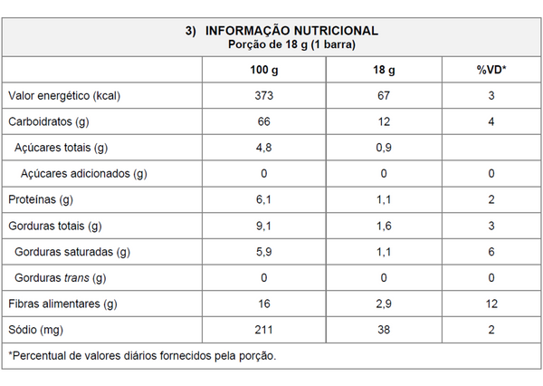 Contém aveia, cevada, centeio e derivados de cevada, de trigo e de soja. pode conter leite, ovo, amendoim, amêndoas, avelã, castanha de caju e castanha do pará. Contém glúten.