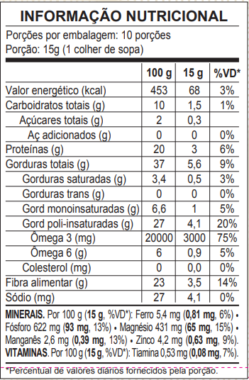 Para preservar ao máximo seus nutrientes, nossa embalagem foi desenvolvida para proteger contra oxidação e perda de qualidade. Assim, você garante todos os benefícios que a linhaça pode oferecer ao seu organismo.